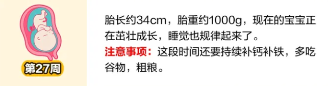 1. 这一周,宝宝的生长速度依然较快。胎宝宝身体的生长、孕妈妈的细胞修复等全部需要蛋白质和热量。蛋白质在肉、鱼、奶酪、蛋、豆类中含量最高,尤其是豆类含有均衡的蛋白质、脂肪、维生素A、维生素B族、维生素D、维生素E以及铁和其他矿物质,是孕期极好的营养来源。